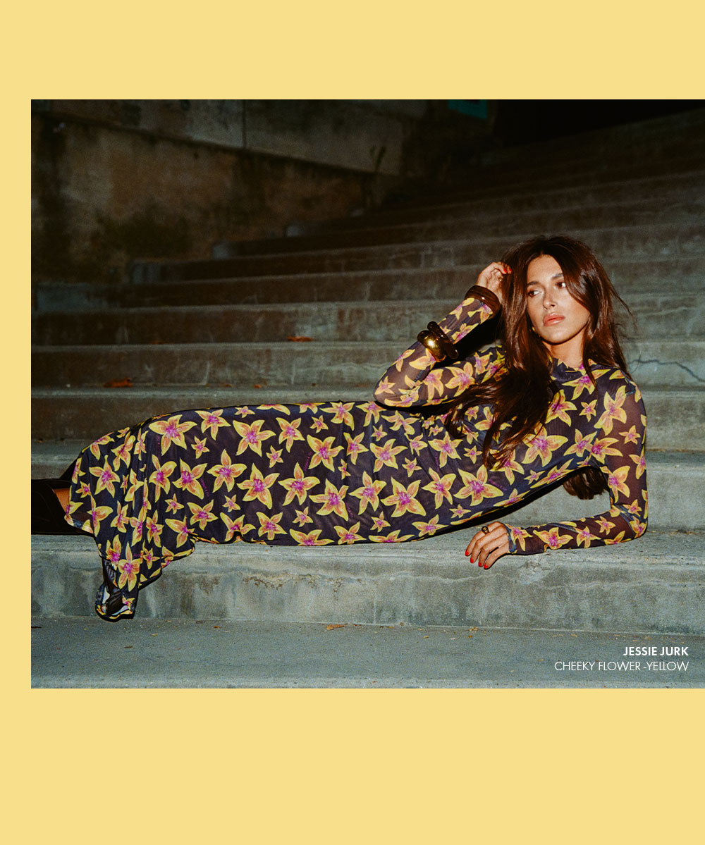 Glow in the dark isn’t just a phenomenon: it symbolizes the ability to stand out, to shine brightly even when surrounded by the moon. And luckily these pieces don’t just catch the eye; they captivate it. Made with materials that absorb light by day and release it by night, you’ll be the center of attention long after the midnight sun goes down. Blacks are combined with vivid flashes of neon brilliance in cheeky flower prints, capturing the spotlight wherever they go.